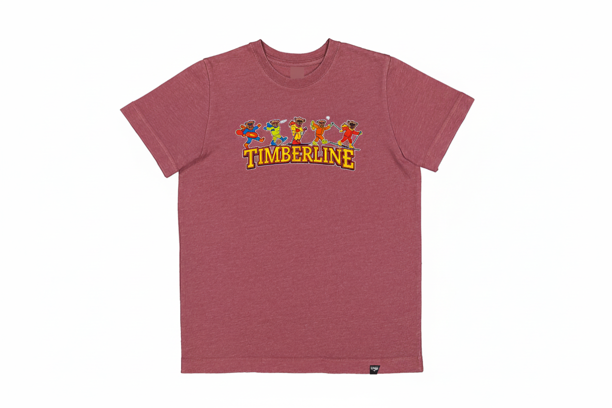 This kids tee brings bold color and joyful energy to a Timberline classic. The Dancing Bears graphic pops against the warm red tone, creating a lively look that celebrates winter fun and playful spirit.